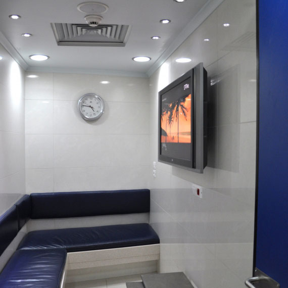 مع توفر جهاز مراقبة دقات قلب الجنين الالكتروني (تخطيط قلب الجنين الكهربائي). وجهاز الإيكو ( السونار) الخاص بقاعة المخاض.