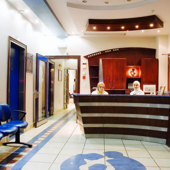 المزود بكادر من الموظفات المدربات بالإضافة إلى وجود شبكة كمبيوتر متكاملة مزودة ببرامج خاصة لتسهيل أعمال الاستقبال والمحاسبة.