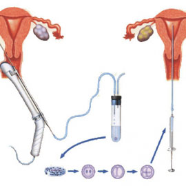 توضع النطاف مع البويضات المتوفرة ضمن حاضنة خاصة تتوافر فيها كافة الظروف الملائمة لتطور الأجنة، وبعد حصول الإلقاح والانقسام (أي تكون المضغة أو الجنين Embryo) تعاد الأجنة إلى داخل الرحم في مرحلة 2 – 8 خلايا أي بعد يومين أو ثلاثة من سحب البويضات.