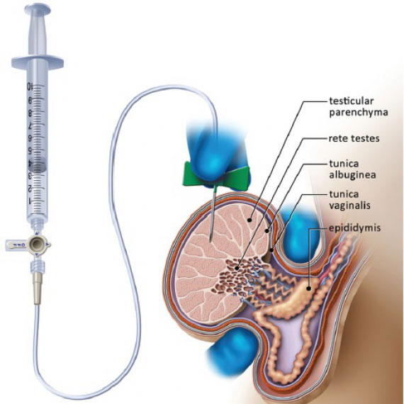 يتم هذا الإجراء بإدخال إبرة دقيقة إلى البربخ أولا ثم إلى الخصية عبر جلد الصفن ورشف مادة من البربخ أو الخصية، أو أخذ خزعات صغيرة مجهرية توضع في سائل مغذي معد مسبقاً لهذا الغرض، ومن ثم فحص هذه العينات مباشرةً بحثاً عن النطاف الناضجة. تؤخذ هذه العينات من عدة أماكن من كل خصية، يحدد عددها تبعاً لحجمها ، وذلك لإجراء مسح وفحص شامل لكل أنسجة الخصية، يفضل إعطاء الصادات الحيوية وقائياً بعد إجراء العملية .